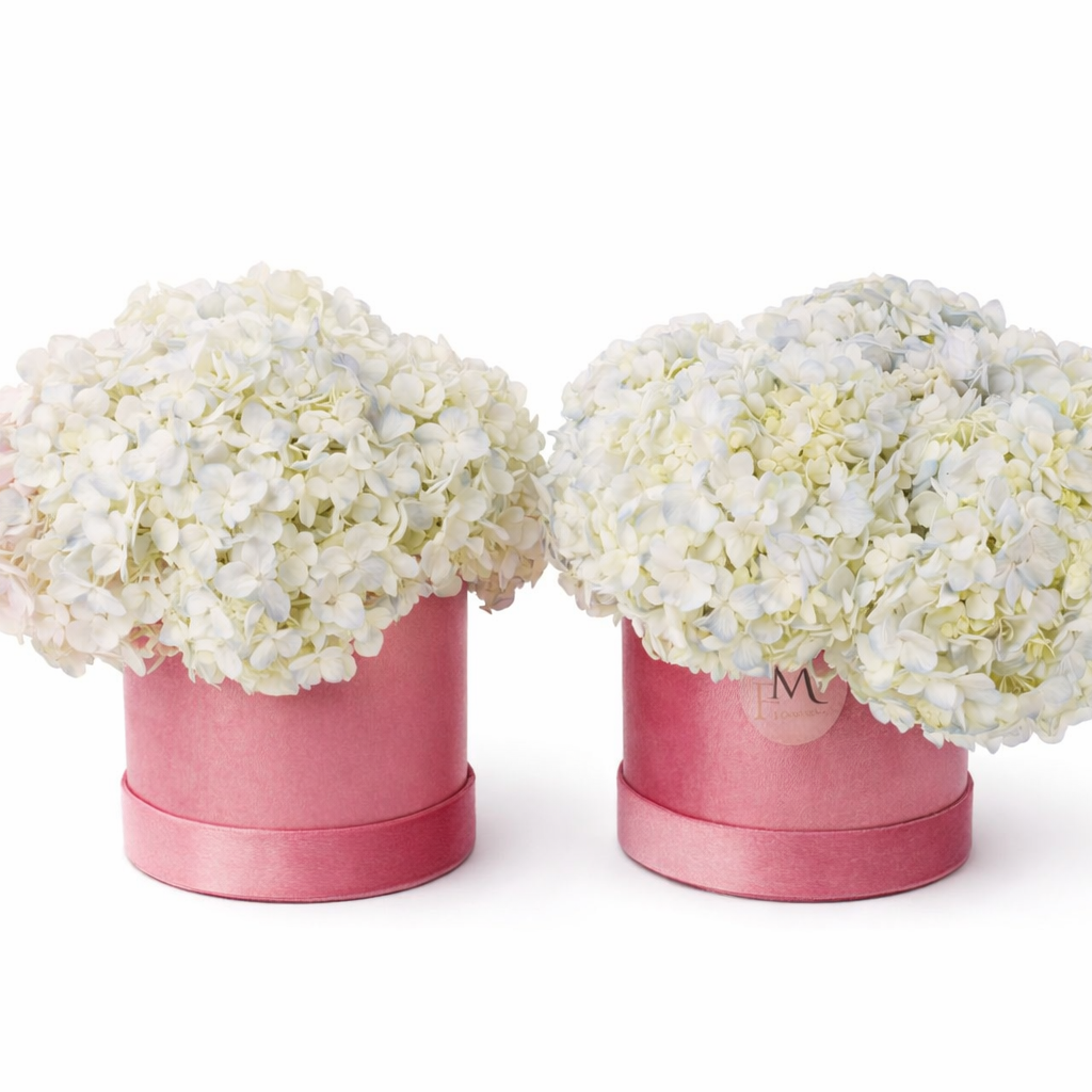 Изискана аранжировка в кутия с буйни хортензии, подбрани заради обема, мекотата и вечната си елегантност. Създадена да направи незабавно впечатление, тази композиция внася спокоен лукс и естествена красота във всеки специален момент. Перфектна като изтънчен подарък или израз на грациозна обич.